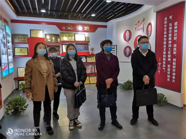 11月4日下午,市級工會升級版標(biāo)兵培育單位考核組由林州市總工會副主席張曉云帶隊,安陽市輕工紡織煙草工會主席李勇進(jìn)、安陽市北關(guān)區(qū)總工會副主席薛梅一行9人到我公司指導(dǎo)工作。公司黨委書記、董事長、總經(jīng)理王高峰,公司黨委副書記、工會主席張錫軍,辦公室主任、工會副主席陸萍陪同參觀。