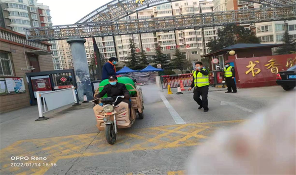 1月8日,金鼎園項(xiàng)目部接到上級防疫指令后,立即成立了以項(xiàng)目負(fù)責(zé)人杜春輝為組長的疫情防控應(yīng)急小組。杜春輝每天協(xié)助社區(qū)開展核酸檢測,接送醫(yī)護(hù)人員,幫助社區(qū)運(yùn)送醫(yī)用垃圾,保障小區(qū)業(yè)主正常生活。