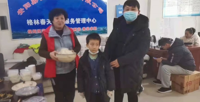 1月16日晚上6時(shí),格林春天項(xiàng)目部辦公室突然來了幾名業(yè)主。他們有的端著鍋,有的拎著袋子,辦公室工作人員張玉青還沒反應(yīng)過來,業(yè)主們已將手中的東西放了一大桌子,袋子里熱乎乎的飯菜香味在空氣中彌漫,綠白相間的蔬菜花卷兒、酸湯皮渣、酥肉丸子、油炸花生米、炒蔬菜、一大鍋米飯,還有一只畫寶剛燒雞,真是豐盛······