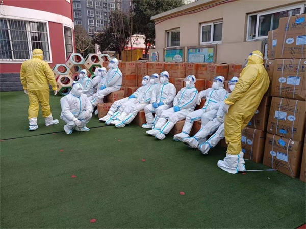 下午2點,特保突擊隊員們又開始行動,將生活物品一個樓層一個樓層往住家戶中送,一直忙到晚上7點,才將全部物品送到居民家中,小區(qū)的業(yè)主們看著這幫身著防護服的特保隊員們,親切稱為他們“大白”,贊揚他們?yōu)榉饪貐^(qū)內(nèi)最美的風景線。