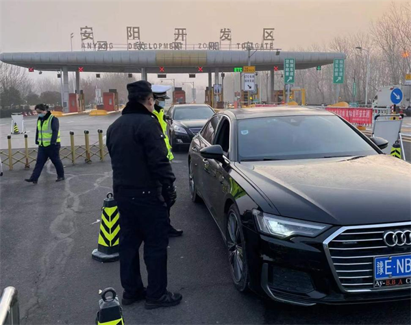 1月6日深夜,特保大隊四中隊接到上級防疫通知,所有備勤人員全部趕往安陽高速開發(fā)區(qū)收費站,執(zhí)行高風險地區(qū)人員和車輛勸返工作。