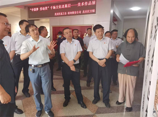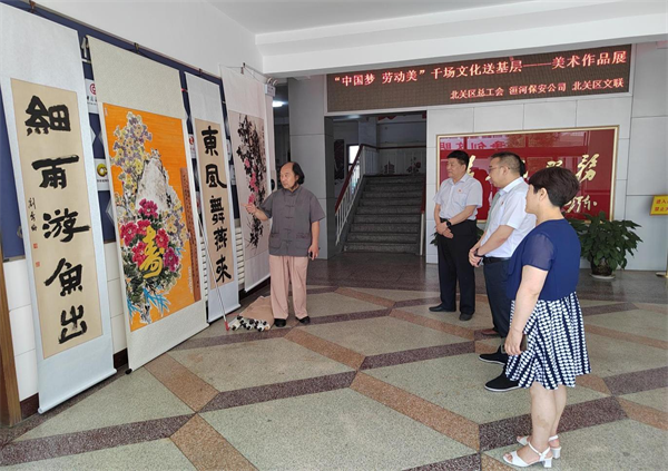 6月16日上午,由公司與安陽(yáng)市北關(guān)區(qū)總工會(huì)、北關(guān)區(qū)文聯(lián)共同承辦為期三天的“中國(guó)夢(mèng)·勞動(dòng)美 千場(chǎng)文化送基層—喜迎二十大 丹青繪北關(guān)”美術(shù)作品展,在公司辦公樓一樓大廳開(kāi)展。北關(guān)區(qū)總工會(huì)主席劉保國(guó),副主席薛梅、杜新芹,北關(guān)區(qū)文聯(lián)負(fù)責(zé)人賈海平,公司黨委書(shū)記、董事長(zhǎng)、總經(jīng)理王高峰,黨委副書(shū)記、工會(huì)主席張錫軍,黨委委員、副總經(jīng)理魏東等領(lǐng)導(dǎo)以及公司機(jī)關(guān)全體人員參加了開(kāi)幕式。開(kāi)幕式由北關(guān)區(qū)政協(xié)委員、區(qū)美協(xié)主席程文鳴同志主持。