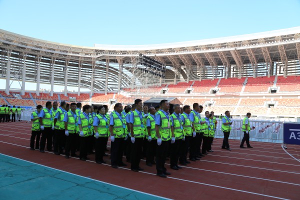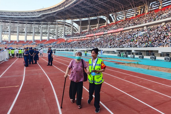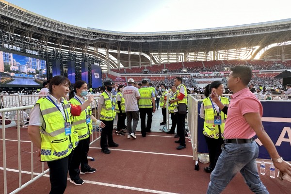 全體執(zhí)勤人員克服活動時間長、天氣炎熱等困難,提前4小時到崗到位,自始至終服從命令、聽從指揮,堅守崗位,認真履責, 既維護現(xiàn)場秩序,又服務群眾。在酷暑之下,全體安保人員頭頂烈日的“拷問”,腳踏熱浪的“侵襲”,堅守在體育場內(nèi)的每個執(zhí)勤點。