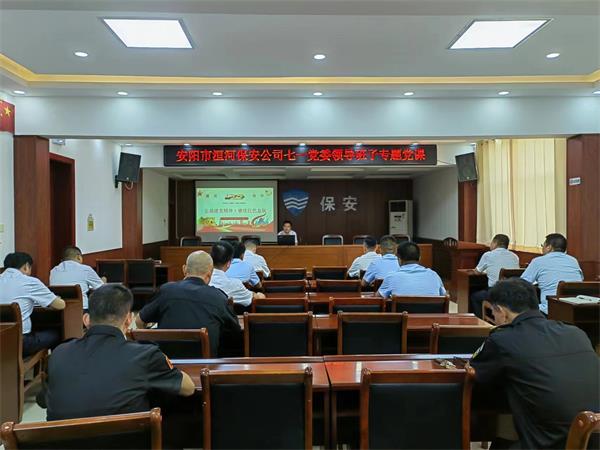 黨課上,孫國濤同志圍繞黨的基本知識、黨的光輝歷史、建黨102周年以來的成就、弘揚建黨精神四個方面展開講授。他強調,全體黨員干部要繼續(xù)弘揚光榮傳統(tǒng)、賡續(xù)紅色血脈,把偉大建黨精神繼承下去、發(fā)揚光大;要在弘揚偉大建黨精神中,進一步強化責任擔當,做到擔當實干,奮勇爭先;要緊扣高質量發(fā)展的時代主題,把黨建與業(yè)務高度融合,全面拓寬業(yè)務增長新思路、新方法,持續(xù)提升保安品牌競爭力。