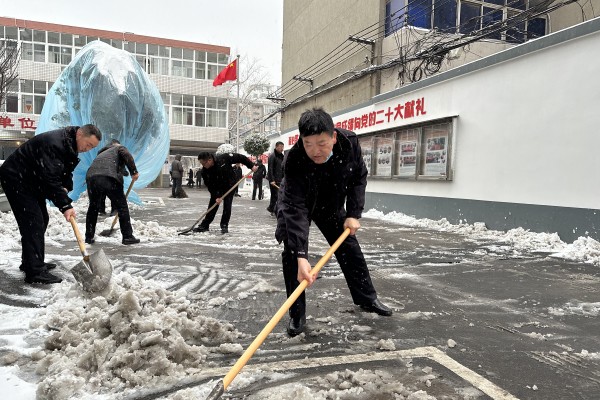 飛雪飄飄凜冬至,銀裝素裹競妖嬈。昨日的降雪,將市區(qū)裝扮得銀裝素裹。但厚實(shí)的凍雪使路面濕滑,給群眾和車輛帶來了極大的不便和安全隱患。為踐行全心為民服務(wù)的宗旨意識(shí),為所有員工營造一個(gè)干凈、安全、便利的出行環(huán)境,12月11日一早,公司領(lǐng)導(dǎo)干部“以雪為令 向雪而行”,在辦公樓院內(nèi)及院外道路開展清冰除雪活動(dòng)。