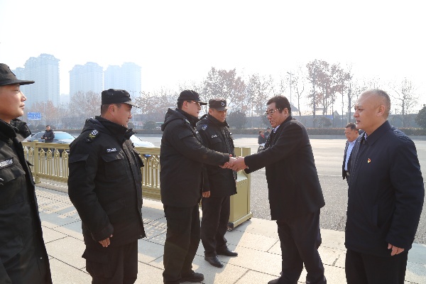 春節(jié)臨近,為體現(xiàn)對(duì)保安從業(yè)人員的關(guān)心和愛(ài)護(hù),切實(shí)做好生活困難保安員的扶困救助工作,提升保安員幸福感,促進(jìn)保安服務(wù)行業(yè)高質(zhì)量發(fā)展。2024年1月29日,河南省保安協(xié)會(huì)副會(huì)長(zhǎng)、鄭州市保安服務(wù)集團(tuán)董事長(zhǎng)王保友等人在市公安局治安管理支隊(duì)保安監(jiān)管隊(duì)長(zhǎng)齊超杰、公司總經(jīng)理魏東的陪同下,走訪(fǎng)慰問(wèn)公司一線(xiàn)保安人員,為他們送上關(guān)懷及新春祝福。