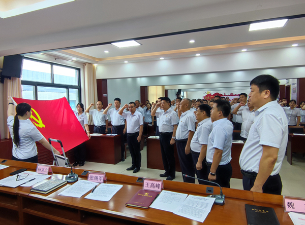 在王高峰同志帶領(lǐng)下,面對(duì)鮮紅的中國(guó)共產(chǎn)黨黨旗,16名新黨員舉起右拳、莊嚴(yán)宣誓,許下錚錚誓言。全體老黨員一同重溫入黨誓詞,時(shí)刻不忘自己的政治身份,無(wú)愧于共產(chǎn)黨員的光榮稱號(hào)。