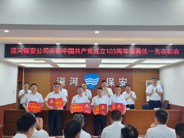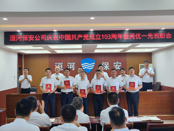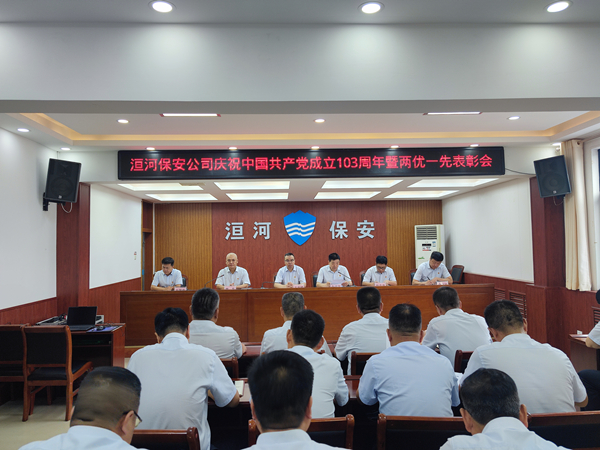 7月5日,公司黨委隆重召開慶祝中國(guó)共產(chǎn)黨成立103周年暨“兩優(yōu)一先”表彰大會(huì),回顧黨的光榮歷史,重溫入黨誓言,表彰在保安戰(zhàn)線上作出貢獻(xiàn)的優(yōu)秀共產(chǎn)黨員、優(yōu)秀黨務(wù)工作者和先進(jìn)黨組織。黨委書記、董事長(zhǎng)王高峰同志出席并發(fā)表講話,黨委副書記、監(jiān)事長(zhǎng)張錫軍,黨委委員、總經(jīng)理魏東,黨委委員楊克忠,黨委委員、副總經(jīng)理孫國(guó)濤、李樞林,黨支部書記、部門負(fù)責(zé)人、受到表彰的先進(jìn)集體和個(gè)人、以及2024年度預(yù)備黨員參加了會(huì)議,會(huì)議由張錫軍主持。