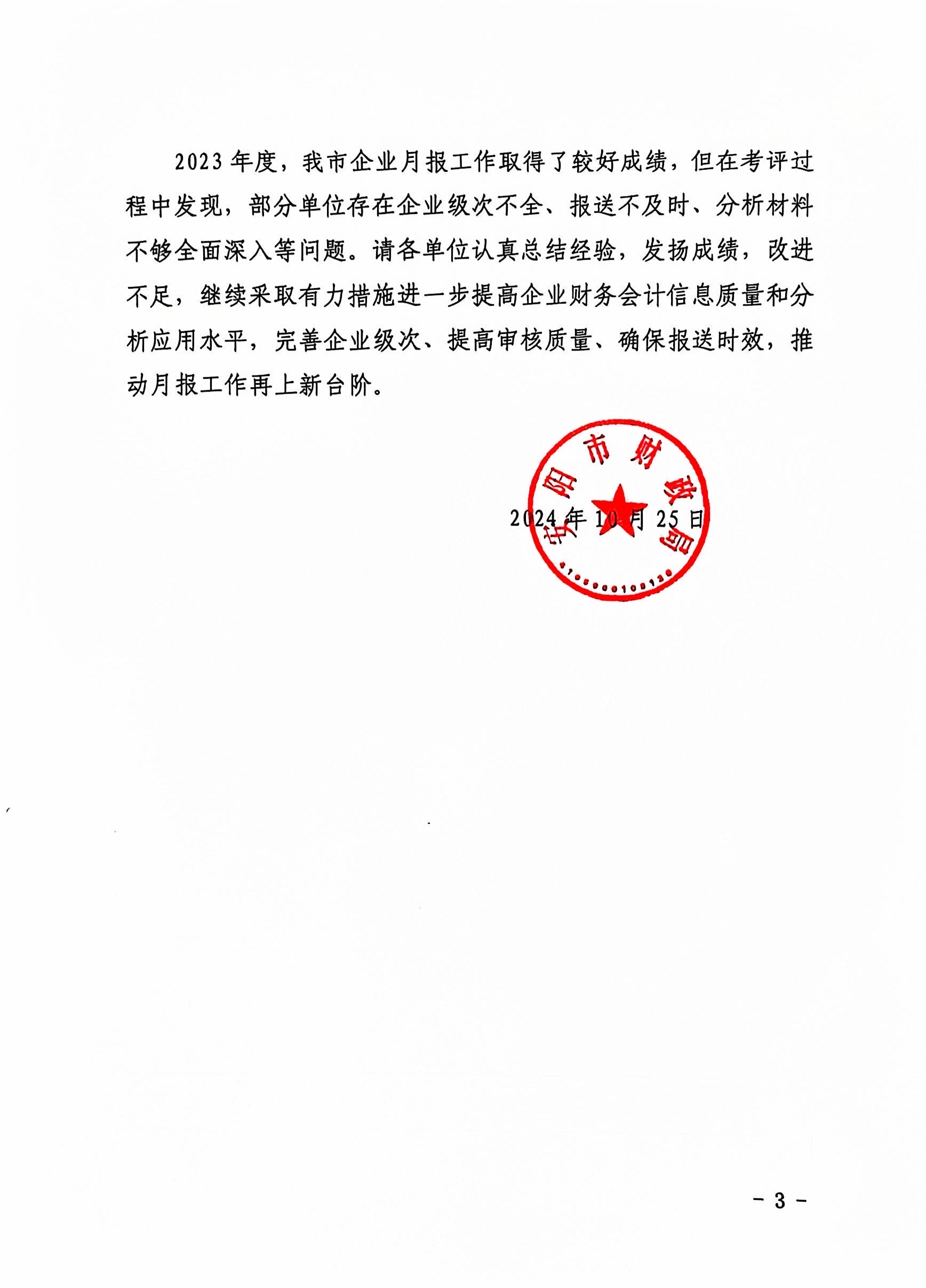 10月25日,安陽市財政局印發(fā)《關(guān)于2023年度企業(yè)經(jīng)濟效益月報工作的通報》(安財企〔2024〕5號),經(jīng)安陽市財政局綜合考評,洹河保安公司2023年度經(jīng)濟效益月報工作及財務(wù)部副主任張鵬霞同志,被通報表揚。