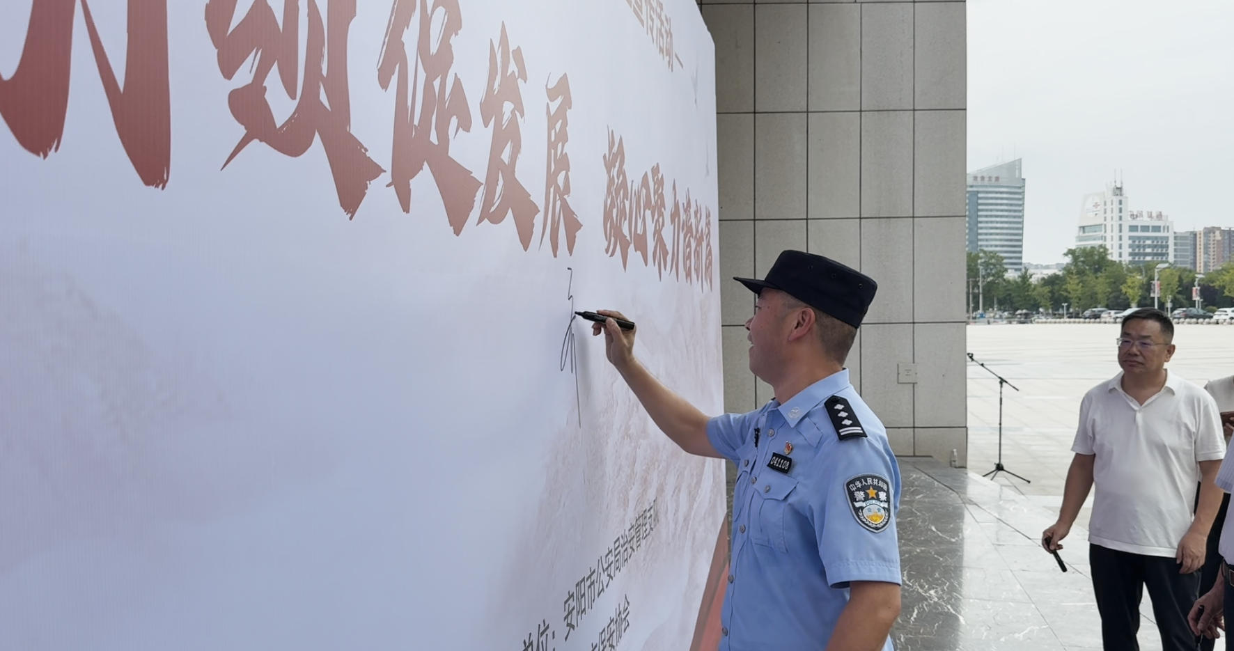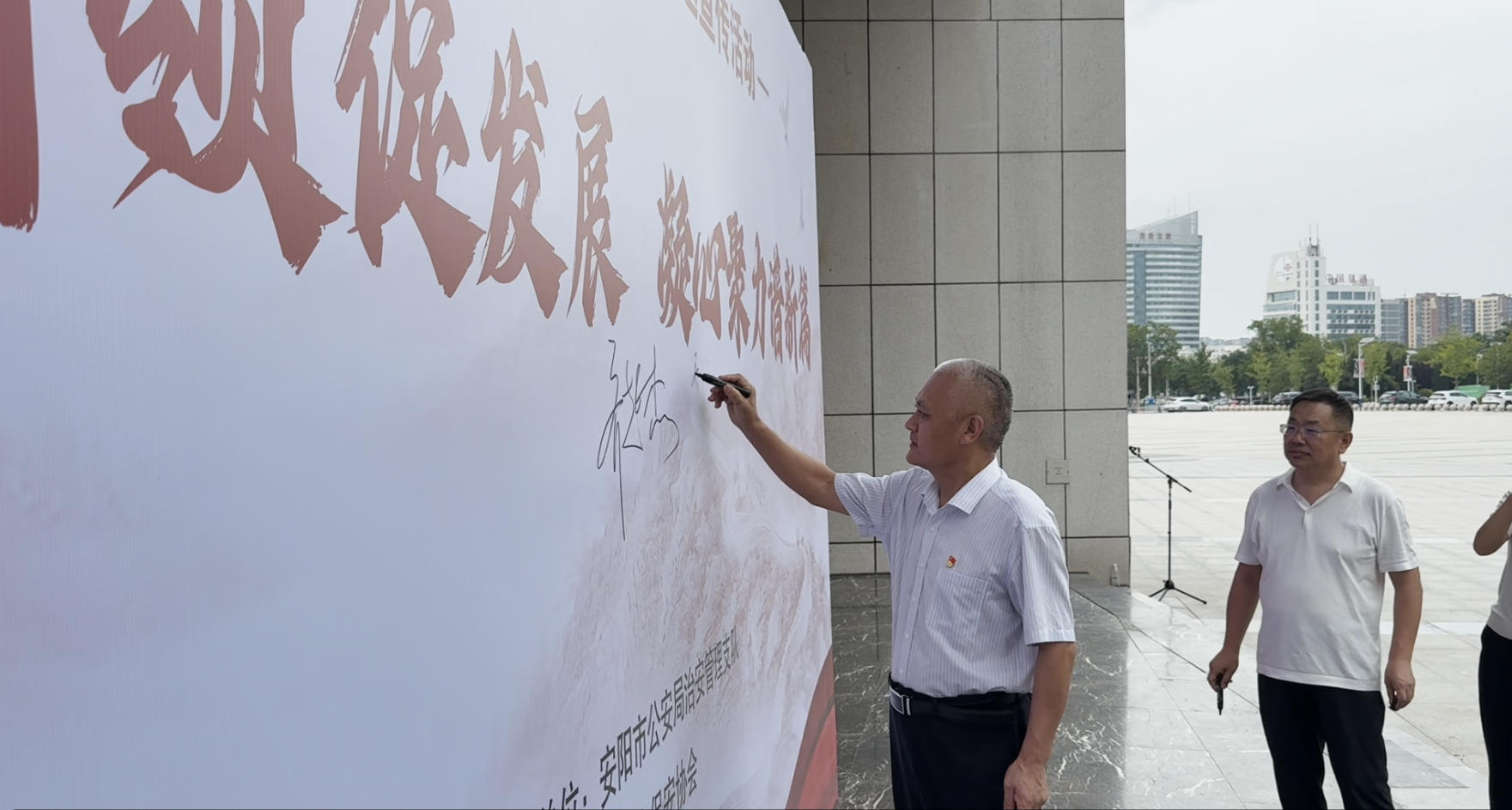 在活動現(xiàn)場,設置了簽名墻環(huán)節(jié)。參會的領導、公司保安員代表以及社會各界代表紛紛在簽名墻上鄭重簽下自己的名字,表達對保安行業(yè)的支持與敬意。一面簽名墻,承載著大家對保安工作的認可,也凝聚著對保安行業(yè)未來發(fā)展的美好期許。