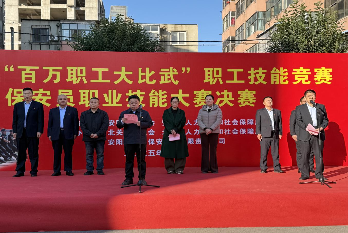 為全面展現(xiàn)全市保安隊伍的專業(yè)素養(yǎng)和精神風貌,11月19日上午,安陽市“百萬職工大比武”保安員職業(yè)技能大賽決賽在公司后院成功舉辦。公司黨委書記、董事長左長虹出席大賽開幕式并致辭,北關區(qū)總工會常務副主席薛梅等相關單位領導蒞臨指導,公司黨委班子成員參加活動。開幕式由公司黨委副書記、監(jiān)事長、工會主席張錫軍主持。