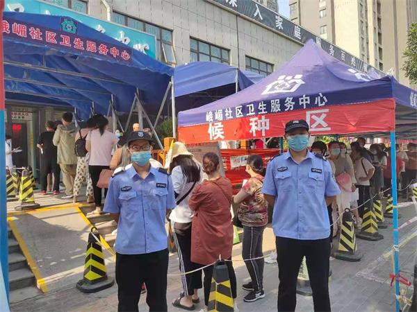 6月22日上午10時,在峨嵋社區(qū)衛(wèi)生服務(wù)中心新冠疫苗臨時接種點,前來接種疫苗的市民人頭攢動。人防一大隊巡防隊員一邊在全力保障現(xiàn)場正常秩序,一邊耐心細(xì)致地解答在場群眾的各種咨詢和提問。