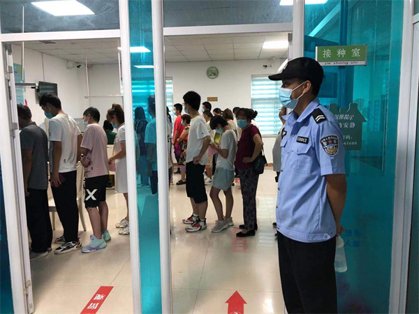 特保巡防隊(duì)員緊密配合相關(guān)部門,現(xiàn)場(chǎng)維護(hù)秩序。接種現(xiàn)場(chǎng)分別設(shè)置等候區(qū)、登記室、接種室、留觀區(qū)、隔離室和處置室等區(qū)域。為防止疫苗接種現(xiàn)場(chǎng)人員集中涌入,造成人員聚集,執(zhí)勤隊(duì)員全程做好現(xiàn)場(chǎng)秩序維持、人員分流、指導(dǎo)疫苗接種群眾佩戴好口罩、有序排隊(duì)、填寫疫苗接種登記信息、入場(chǎng),并及時(shí)勸導(dǎo)接種后人員有序撤離現(xiàn)場(chǎng),接種現(xiàn)場(chǎng)整個(gè)過程有條不紊。