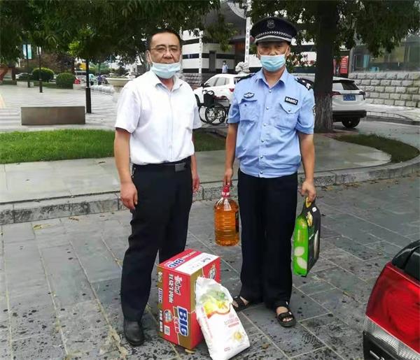 2021年8月5日上午,人防二大隊(duì)隊(duì)長(zhǎng)王向煜、副隊(duì)長(zhǎng)曹修穩(wěn)向受災(zāi)隊(duì)員駐市煙草專(zhuān)賣(mài)局保安員連剛、安陽(yáng)卷煙廠保安員孫紅軍、任俊民送去米、面、油和方便面慰問(wèn)品,把組織的關(guān)懷送到了基層隊(duì)員心里。