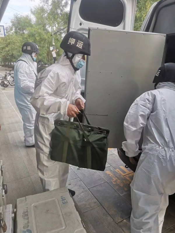 疫情就是命令。隊長馮文峰第一時間安排車組,調(diào)配人員,并強(qiáng)調(diào),執(zhí)勤人員在按時接回款箱的同時,要做好個人防護(hù)。在馮文峰的指揮下,湯陰車組身著防化服,趕赴湯陰,準(zhǔn)時、圓滿的完成了押運任務(wù)。