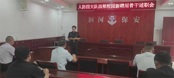 9月3日上午,人防四大隊西部校園新聘用骨干述職會在公司南二樓會議室召開,人防四大隊大隊長陳志軍、副大隊長李領軍參加述職活動并擔任評委,西部校園12名代理班長進行述職匯報。