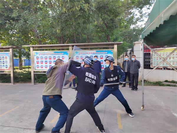 最后,袁學(xué)軍副校長對本次反恐防暴演練提出了表揚和肯定,他講到:本次演練很成功,場景很貼近生活,一切都是從實戰(zhàn)出發(fā),反映出了洹河保安的實力和專業(yè)性;整個演練過程緊湊,嚴(yán)肅而逼真,隊員配合默契,反映出了保安隊員過硬的軍事素質(zhì)和嫻熟的處突能力;感謝人防五大隊對學(xué)校安保工作的大力支持和各參演人員的辛苦付出,學(xué)校連年取得的區(qū)“平安校園”榮譽,離不開你們默默無聞的付出。同時,勉勵全體隊員繼續(xù)努力,堅守崗位,與學(xué)校廣大師生一起迎接二十大勝利召開,確保校園安全穩(wěn)定。