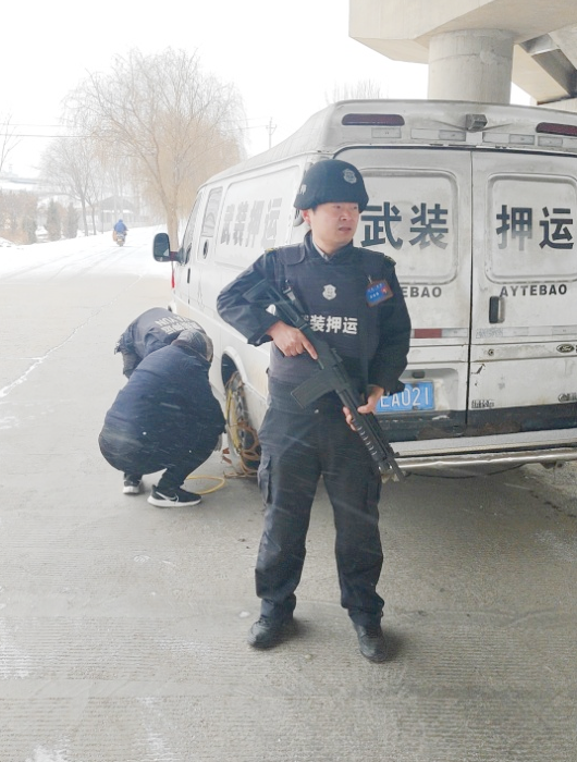 橫水線路、任村線路押運車輛均在行駛中,立即根據(jù)路況加裝了車輛防滑鏈。東姚線路押運車輛在行駛至洪河網(wǎng)點時,由于雪越下越大,導致進入洪河村時積雪深度較厚,車長李玉浩立即下車進行勘察,發(fā)現(xiàn)鄉(xiāng)村小道不但積雪較厚,還多有坑洼狹窄的路段,雖然安裝有防滑鏈,但對于車輛行駛有很大的安全隱患。經(jīng)過車長與司機、車組人員商議,并報副隊長管宇飛批準,決定采取徒步進行接送洪河網(wǎng)點款箱,徒步接送路程大約有3公里左右。為確保安全,司機將車輛停靠村口最近位置,并留守一名押運員值守,車長隨調(diào)款員前去接送款箱,經(jīng)過一段時間的徒步行進,將款箱安全裝車,并于晚上8時左右,東姚線路車輛安全返回駐地,安全的完成了押運工作任務(wù)。