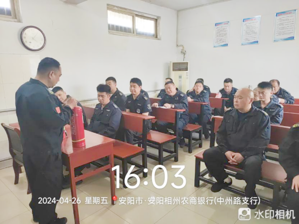 為確保五一節(jié)期間押運工作安全,4月26日,守押十二大隊相州農(nóng)商銀行中隊進行消防安全知識培訓(xùn)。