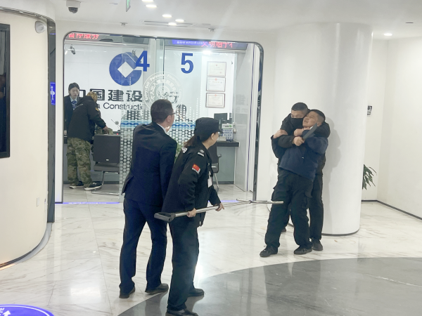本次演練模擬了銀行員工在日常業(yè)務(wù)辦理過程中遇到歹徒搶劫的情景??蛻魝冋谟行蜣k理業(yè)務(wù),突然一名偽裝成普通客戶的“劫匪”手持兇器闖入大廳,企圖實施搶劫。面對這一突如其來的緊急情況,大堂經(jīng)理第一時間按下報警按鈕,并迅速通知安保部門報告情況。同時,保持冷靜爭取時間等待警察到來。與此同時,其他員工也迅速行動起來,有的則隱蔽地點記錄“劫匪”的動向,以便為后續(xù)提供好的線索。網(wǎng)點安保人員與“警方”保持緊密溝通,協(xié)助警方制定救援計劃。在警方的精心部署下,最終成功將“劫匪”制服并帶離現(xiàn)場。