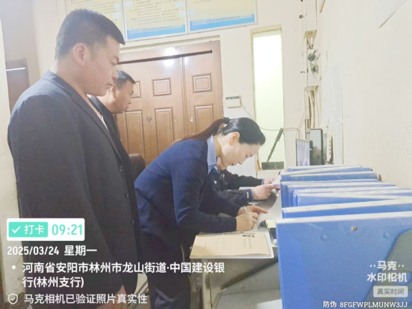 3月24日上午9時(shí)左右,林州市公安局治安大隊(duì)民警郝白山一行人到七大隊(duì)農(nóng)商行和建行中隊(duì)檢查守庫(kù)槍支工作。各中隊(duì)副隊(duì)長(zhǎng)全程陪同檢查。