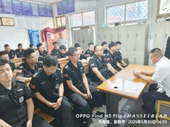 會(huì)議強(qiáng)調(diào),一是全面學(xué)習(xí)公司文件“關(guān)于做好2025年端午節(jié)放假和安全保衛(wèi)工作的通知”,做到放假不放制度。二是強(qiáng)化槍彈管理,節(jié)前開(kāi)展槍彈安全排查,槍彈監(jiān)督安全員要時(shí)刻做好監(jiān)督,槍彈領(lǐng)取交接臺(tái)賬要填寫(xiě)規(guī)范,嚴(yán)格遵守守押操作規(guī)程。三是嚴(yán)格杜絕酒后上崗,做好每日酒精測(cè)試工作。要求著裝規(guī)范和符號(hào)齊全,時(shí)刻注意工作形象。四是節(jié)日期間車(chē)輛增多,要求所有司機(jī)文明駕駛,減速慢行,尤其是鄉(xiāng)間交叉路口、學(xué)校和旅游區(qū)附近,提高工作責(zé)任心,謹(jǐn)慎駕駛。