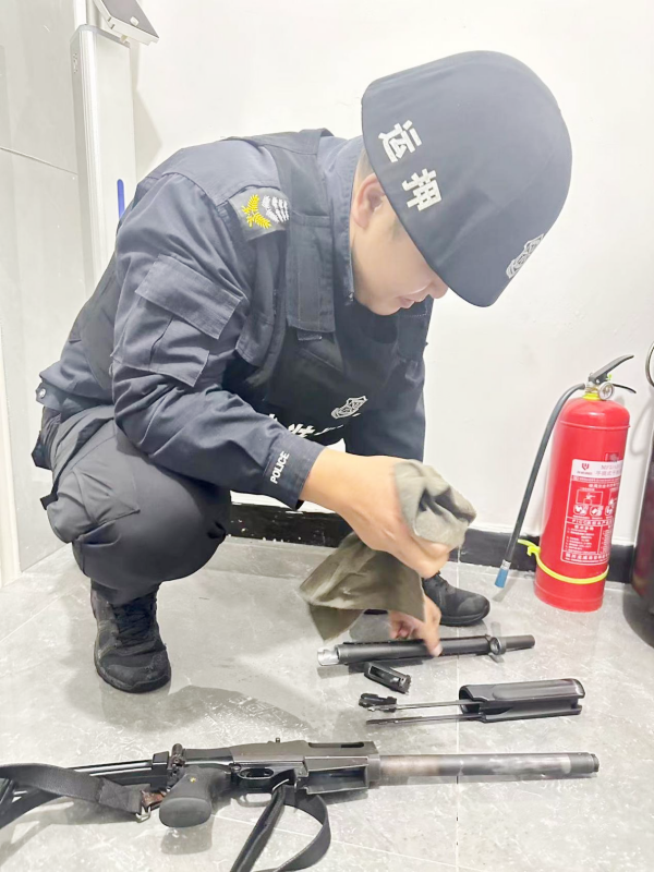 保養(yǎng)過程中,押運員嚴格對標《槍支管理規(guī)定》要求,全程遵循“分解徹底、清潔到位、潤滑均勻、調(diào)試精準”原則,逐一拆解槍支,細致清除部件縫隙內(nèi)的灰塵與濕氣,涂抹專用潤滑劑,同時還重點檢查了擊發(fā)裝置靈敏度、槍管內(nèi)壁光潔度、彈匣供彈流暢性等核心指標。