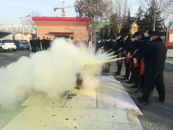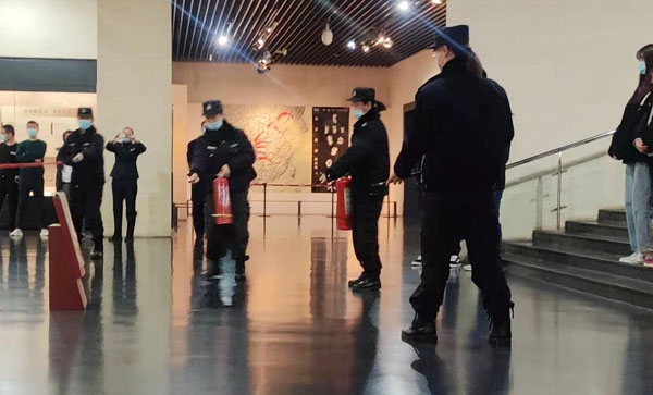 12月18日上午8點30分,特保大隊派駐中國文字博物館中隊按照客戶年末冬季消防防控要求,結(jié)合公司《冬春季火災(zāi)防控實施方案》活動內(nèi)容,進行了消防演練??蛻舭脖2恐魅螌O琳杰和全館工作人員觀摩??蛻舫浞挚隙岁爢T的消防技能。特保大隊隊長李樞林指導(dǎo)此次演練。