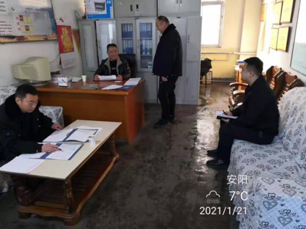 1月21日上午,公司考評(píng)組一行人到守押七大隊(duì)檢查各項(xiàng)工作。考評(píng)組對(duì)大隊(duì)2020年度的評(píng)選先進(jìn)工作,逐一進(jìn)行對(duì)照和查看,并詳細(xì)詢問了評(píng)選的流程和評(píng)選資格,并抽查了大隊(duì)的各項(xiàng)工作臺(tái)賬,以及學(xué)習(xí)記錄。考評(píng)組肯定了大隊(duì)的各項(xiàng)工作。