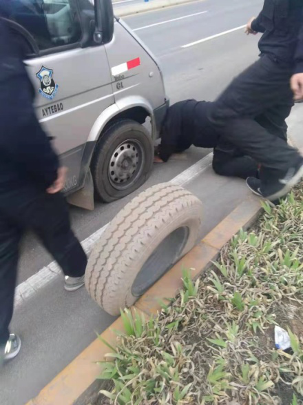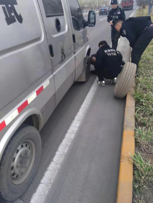 3月10日下午,守押七大隊聯(lián)社中隊橫水線路押運車輛豫EEA030行駛途中輪胎受損,導致車輛行駛異常。車長苗榮斌感覺異樣,立即叫停,安排司機原艷兵下車檢查,發(fā)現(xiàn)車輛右前輪胎發(fā)生漏氣,馬上就要癟掉。得知車況后,苗榮斌立即大隊領(lǐng)導上報情況。大隊指示,在安全的情況下更換車輛備胎,并同時上報了公司監(jiān)控中心。
