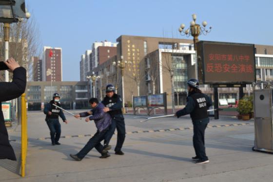為切實強化校園安保工作,提升保安隊員對突發(fā)性暴力事件的反應(yīng)和處置能力, 3月15日,人防三大隊校園二中隊組織保安隊員在安陽市第八中學(xué)進(jìn)行了防恐安全演練。