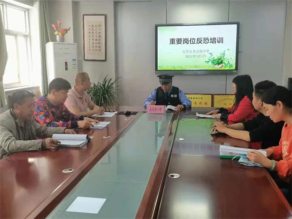 5月10日上午9點(diǎn),人防二大隊派駐永安街小學(xué)保安楊承濤受校方委托,在學(xué)校二樓黨建工作室對后勤人員及體育老師進(jìn)行了反恐知識培訓(xùn)。