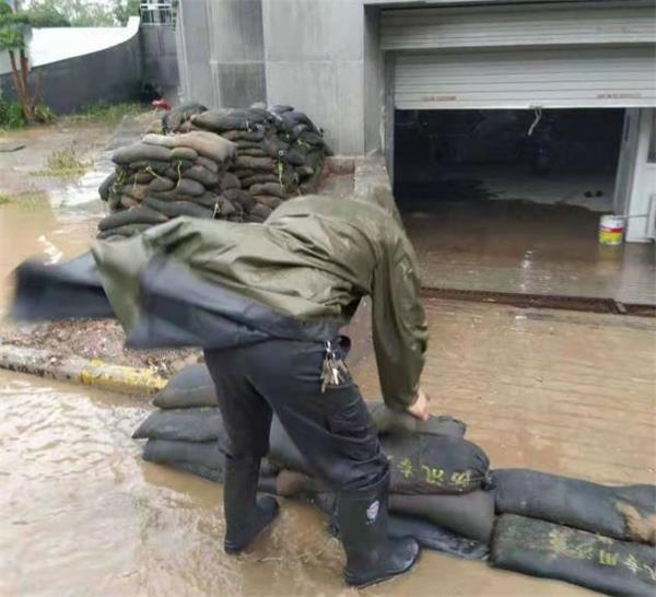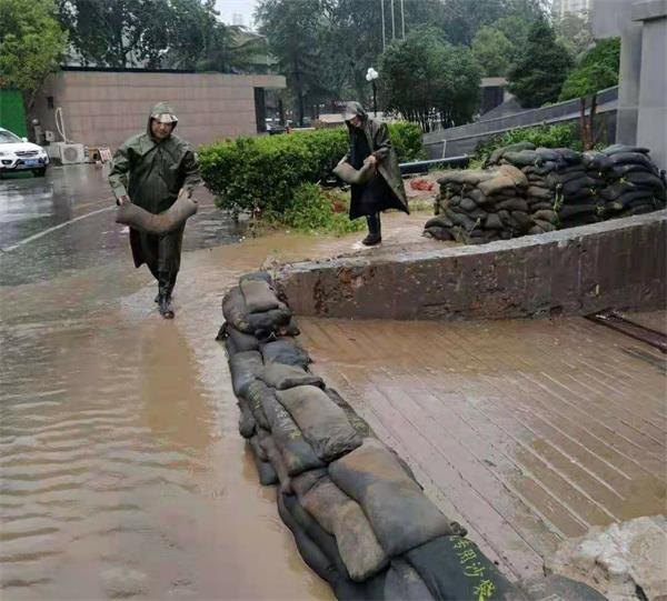 保安隊員冒著暴雨四處巡查客戶單位各排水口,疏通堵塞的下水道,讓雨水快速流過;利用防汛沙袋及時建立防汛墻阻止雨水倒灌進入地下停車場;對部分滲透入地下車庫的雨水進行及時清理。很快,隊員的有效處置措施,阻止了雨水漫入地下車庫,避免了客戶單位財產(chǎn)損失。