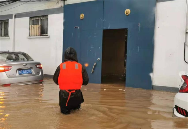 2021年7月22日早上7點(diǎn)左右,安陽(yáng)幸福路工行憑證庫(kù)房值班隊(duì)員告急,由于下雨急,積水深,庫(kù)房有雨水倒灌情況。鄭芳軍隊(duì)長(zhǎng)接到救援電話(huà)后,憑證庫(kù)房是工行的票據(jù)重地,汛情就是命令,立即組織6名防汛突擊隊(duì)冒著深及脖子的洪水,手拉救生繩,身穿救生衣,冒著生命危險(xiǎn)向憑證庫(kù)房挺進(jìn)。到達(dá)后,發(fā)現(xiàn)庫(kù)房門(mén)口水位上升,他們及時(shí)將票據(jù)挪到安全位置,防止浸泡受損,門(mén)口用沙袋進(jìn)行封堵,確保了憑證庫(kù)房安全??吹桨踩怂麄冇猪樤访坝晏仕谕砩?0點(diǎn)安全返回市行門(mén)崗。
