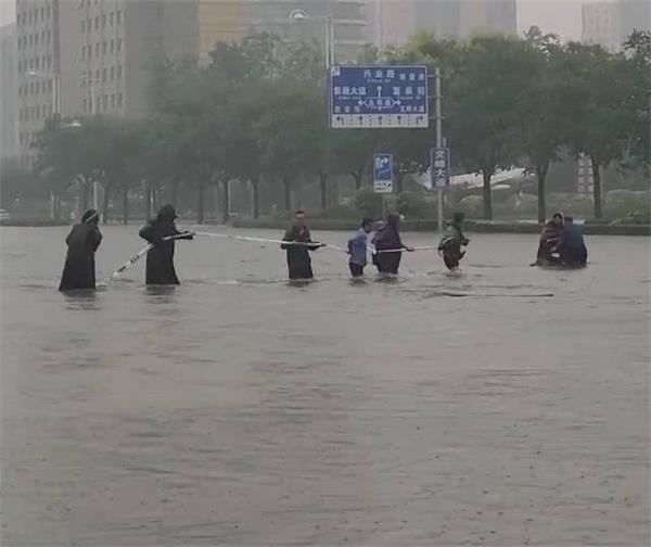 7月22日早6時(shí)許,汛情肆虐,雨越下越大,寬闊的安陽(yáng)市東區(qū)文峰大道水深過(guò)膝,儼然變成了一條奔涌的河流。安陽(yáng)市事務(wù)管理局在周福林副局長(zhǎng)的指揮下,緊急啟動(dòng)防汛救災(zāi)應(yīng)急處置預(yù)案,各防汛突擊小組分工明確,責(zé)任到人,全力投入抗洪戰(zhàn)斗。在南大門值守的駐市黨政大樓保安員在中隊(duì)長(zhǎng)戶永豐帶領(lǐng)下搬運(yùn)沙袋剛構(gòu)筑好攔水壩,還沒(méi)來(lái)得及歇口氣,忽然聽(tīng)到一女子“救命”的呼救聲。隊(duì)員們循聲望去,只見(jiàn)路上洶涌的激流中沖過(guò)來(lái)一個(gè)人,那人想站又站不起來(lái),在水中翻滾著由西向東順流而下。