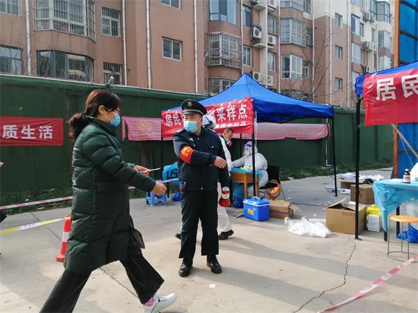 2022年1月11日,整個(gè)安陽按下了暫停鍵,公交停運(yùn),學(xué)校停課,商鋪酒店關(guān)門歇業(yè),然而抗擊疫情的腳步一刻也不能停頓。人防二大隊(duì)根據(jù)北關(guān)區(qū)疫情防控工作需要,在接到公司指令后,在疫情防控形勢(shì)異常嚴(yán)峻、各崗位人員異常緊張的情況下,與兄弟大隊(duì)人防四大隊(duì)聯(lián)手,在副大隊(duì)長(zhǎng)張海林的帶領(lǐng)下,第一時(shí)間抽調(diào)常文廣、李艷軍等10名保安員,前往盤庚中社區(qū),承擔(dān)了核酸檢測(cè)點(diǎn)的秩序維護(hù)任務(wù)。