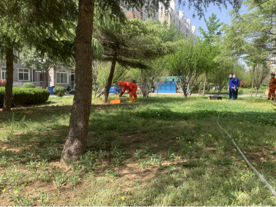 為做到萬(wàn)無(wú)一失,確保業(yè)主安全。蘇俊強(qiáng)向消防隊(duì)求助,消防人員接警后,經(jīng)過(guò)現(xiàn)場(chǎng)考察,消防人員與物業(yè)公司聯(lián)手制定了除掉馬蜂窩的實(shí)施方案。經(jīng)充分準(zhǔn)備,消防人員用滅害靈和火,一舉將馬蜂窩滅掉,解除了小區(qū)業(yè)主的恐慌情緒。