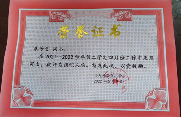 在疫情防控常態(tài)化背景下,校門管控是校園疫情防控的第一道防線,是疫情防控工作的重點(diǎn)部位,校園保安在校門守衛(wèi)持久戰(zhàn)中扮演著舉足輕重的角色。今年4月份以來(lái),安陽(yáng)市內(nèi)疫情多點(diǎn)散發(fā),為確保校園的安全穩(wěn)定,李芳貴堅(jiān)守崗位,在校園內(nèi)開(kāi)展全方位的消毒防疫和隱患排查工作,定期檢查水電消防,做到發(fā)現(xiàn)隱患及時(shí)處置,確保校園疫情防控及安全工作做實(shí)做好,承擔(dān)起守護(hù)校園疫情防控第一道防線的重大責(zé)任,在四月份總結(jié)評(píng)比中被安陽(yáng)外國(guó)語(yǔ)小學(xué)評(píng)為旗幟人物。