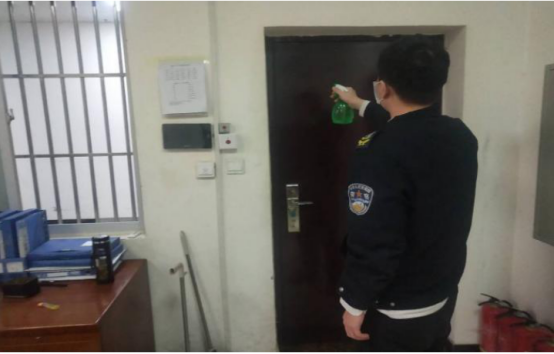 隨著新冠肺炎疫情的發(fā)展,守押九大隊領(lǐng)導(dǎo)和全體隊員在這場看不見硝煙的戰(zhàn)場上,迎難而上,共抗疫情。對領(lǐng)導(dǎo)首要時間將上級防范、控制疫情的精神傳達到隊員,鼓舞隊員抗擊疫情的士氣,并將防控疫情的方法發(fā)送到大隊工作群,教育隊員提高認識,做好防范。當(dāng)酒精、口罩、84消毒液這些防護用品在市場大面積斷貨的情況下,為加強隊員的保護,避免交叉感染,隊員岳兆宇得知大隊消毒水用完的時候,2月4日,首要時間主動把自己家里用的酒精拿來,將大隊所有車輛及守庫室認真仔細消毒一遍。此后每天出車前后,他都主動為大隊車輛、守庫室兩次消毒。隊員張一博主動從自家?guī)砑t外線測量體溫儀器,每天都在點名前主動為大家測量體溫。雖然疫情無情,但守押九大隊有溫情,大隊領(lǐng)導(dǎo)和全體隊員團結(jié)一致,眾志成城,助力打贏疫情防控阻擊戰(zhàn)。
