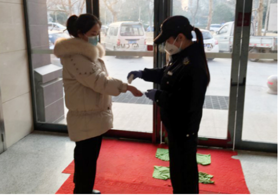 特保大隊(duì)五中隊(duì)女隊(duì)員李方,是一名普普通通的特保隊(duì)員,日常工作是負(fù)責(zé)招商銀行營業(yè)廳的安全保衛(wèi)工作,除了把日常的工作開展好,在本次疫情發(fā)生之后,她每日主動(dòng)配合銀行領(lǐng)導(dǎo)給員工、顧客測量體溫,進(jìn)行消毒工作,堅(jiān)持一線,守護(hù)安全。