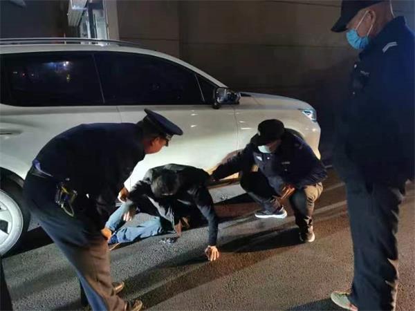 3月29日21:30許,駐龍安區(qū)巡防隊(duì)郭國峰、崔志濤、肖鵬、畢治華等隊(duì)員巡邏至梅東路與龍圖街西北角處時(shí),借著巡邏車的燈光發(fā)現(xiàn)一輛轎車旁躺著一個(gè)人。于是,他們趕忙過去查看,來到近前,發(fā)現(xiàn)一名男子身上散發(fā)出很濃的酒氣。由于該路段沒有路燈,能見度極差,不易被發(fā)現(xiàn),人來車往,極易發(fā)生事故。因該男子已經(jīng)神智不清,無法給他正常交流,崔志濤隨撥打了110,隊(duì)員們一邊對該男子進(jìn)行保護(hù),防止發(fā)生意外,一邊勸離圍觀群眾,防止交通堵塞。