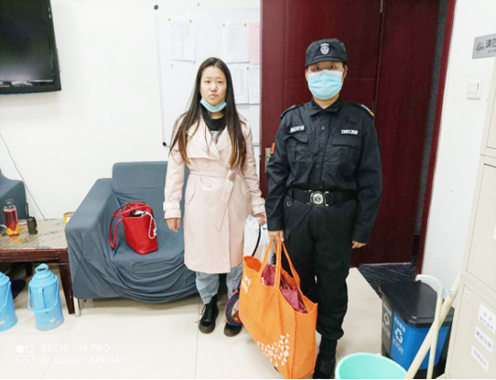在游客發(fā)現(xiàn)丟失了物品,到安檢處尋找時,特保隊員將其帶到安保部認領(lǐng)失物。安保部工作人員確認無誤后,將包歸還給游客,游客非常感謝安陽保安拾金不昧的風格高尚。