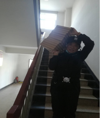 “讓保安員來幫忙吧?!毕氲竭@里,工作人員馬上通知在門崗執(zhí)勤的保安隊員黃相武、常松平來4樓幫忙轉(zhuǎn)移檔案。