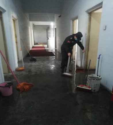 經(jīng)過3個多小時的奮戰(zhàn),黃相武、常松平和客戶單位工作人員終于將4樓倉庫內(nèi)的積水清理完畢。