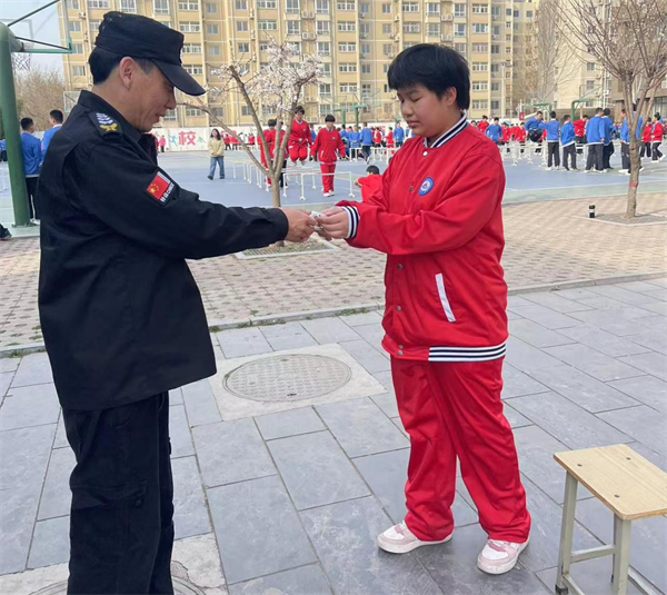 3月16日,市八中一名女學(xué)生來到學(xué)校門崗,將一紙感謝信送到人防三大隊派駐該校保安班中隊長楊海順手中,感謝楊海順撿到她遺失的電話手表。