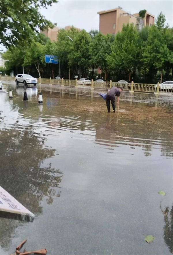 劉紅賓在積水中忙碌的身影,成為了街頭一道獨(dú)特的風(fēng)景。他全神貫注,不顧雨水的拍打和污水的浸泡,只為盡快排除積水,恢復(fù)道路的暢通與安全。經(jīng)過(guò)他的不懈努力,積水逐漸退去,道路恢復(fù)了往日的模樣。