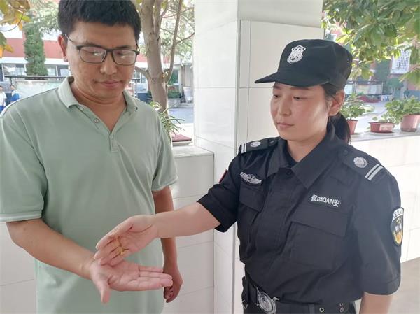 國慶節(jié)放假前夕,安陽市幸福路中學(xué)門口上演了一幕溫暖人心的場景。人防三大隊(duì)派駐該校保安高美麗如往常一樣堅(jiān)守在下午入學(xué)的“護(hù)學(xué)崗”,一邊引導(dǎo)送學(xué)車輛有序通行,一邊提醒學(xué)生安全入校。在疏導(dǎo)完高峰人流后,例行巡查校門口區(qū)域時(shí),于人行橫道旁發(fā)現(xiàn)一條精致的金項(xiàng)鏈,鏈身鑲嵌的吊墜完好無損,初步判斷價(jià)值不菲。