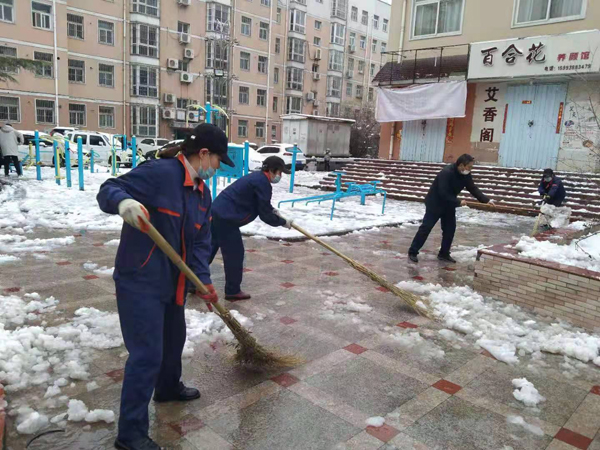2月25日,雨雪天氣過后,鼎誠物業(yè)公司領(lǐng)導和員工積極行動應對雨雪天氣給物業(yè)公司帶來的影響。