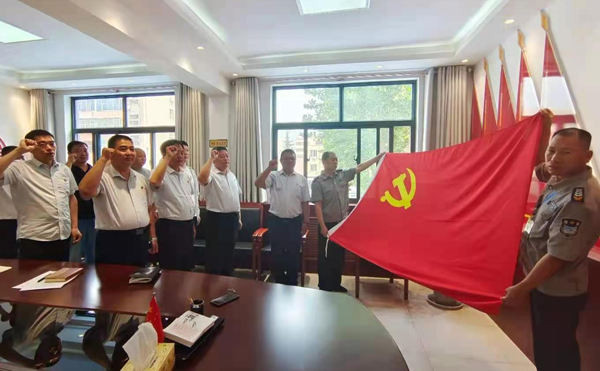 6月28日上午,為慶祝建黨100周年,扎實推進黨史學習教育,第五黨支部全體黨員在公司二樓黨建會議室開展“重溫入黨誓詞 慶祝建黨百年”活動。與會黨員、預備黨員面向黨旗莊嚴宣誓。