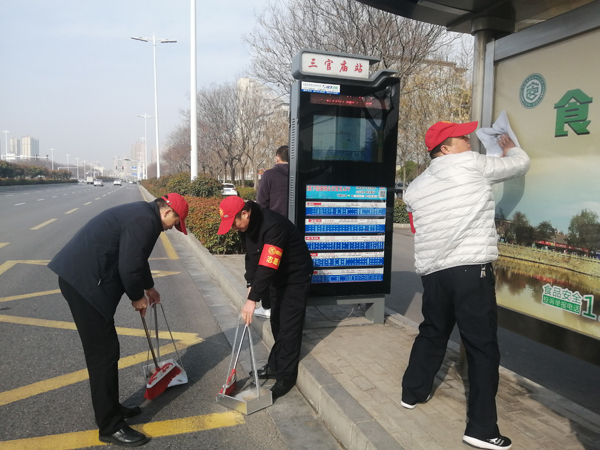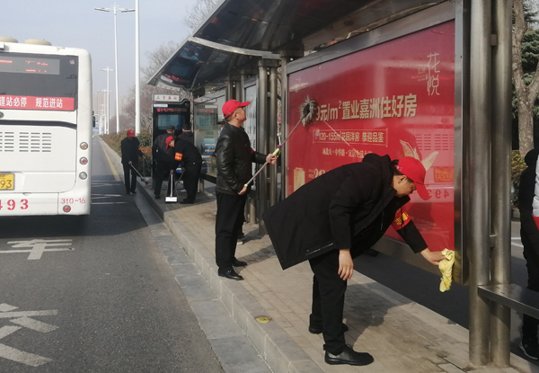 3月5日上午,第五黨支部志愿者帶著掃帚和抹布等工具,來到人民大道三官廟公交車站臺清除垃圾,清理衛(wèi)生死角?;顒又校蠹覅f(xié)作配合,發(fā)揚(yáng)不怕苦、不怕臟的精神,對公交站臺、人行道及路邊綠化帶內(nèi)的落葉、雜草、垃圾等進(jìn)行了全面清理打掃。經(jīng)過大家的辛勤勞動,公交站點(diǎn)兩旁的衛(wèi)生干凈整潔、煥然一新。